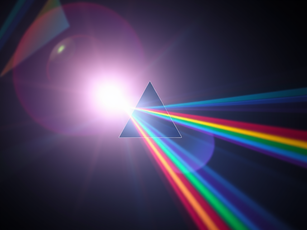 A luz branca atravessa o prisma e nos oferece sete cores : vermelho, laranja, amarelo, verde, azul, índigo e violeta, que são as cores do arco-íris e dos 07 chacras principais.