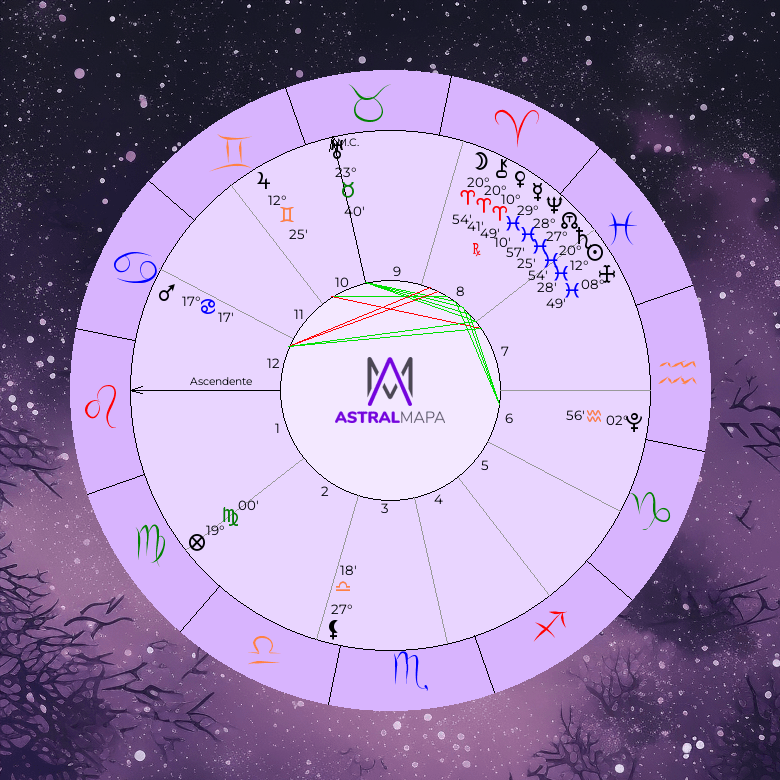 Astrologicamente, Lua/Saturno – emoções responsáveis ou contidas – são comandados por Netuno que também se encontra em Peixes.