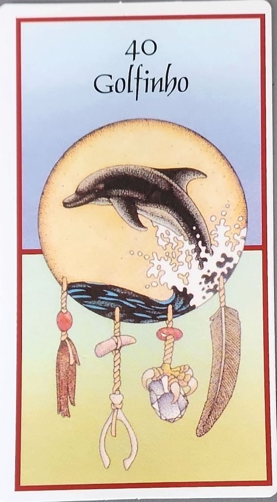 Indicação de Cura : O Golfinho lhe diz que você está predestinada a ser elemento de ligação e oferecer alguma solução para os problemas dos Filhos da Terra. Mas para isto é preciso se conectar com ritmos : o seu próprio, da respiração e da natureza. Tudo na vida se move em ciclos de fluxo e refluxo, com oscilações que se compensam, como um pêndulo. Tudo tem ritmo. A sintonia com os ritmos da natureza , traz respostas tanto para as suas indagações quanto para os demais . Espalhe alegria pelo mundo. Respire.
